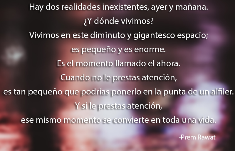 Hay dos realidades inexistentes, ayer y mañana. ¿Y dónde vivimos? Vivimos en este diminuto y gigantesco espacio; es pequeño y es enorme. Es el momento llamado el ahora. Cuando no le prestas atención, es tan pequeño que podrías ponerlo en la punta de un alfiler. Y si le prestas atención, ese mismo momento se convierte en toda una vida.