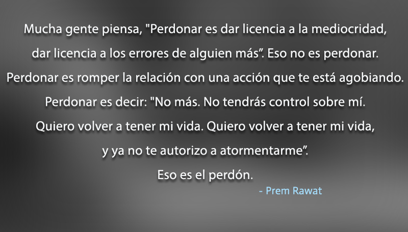 Mucha gente piensa, "Perdonar es dar licencia a la mediocridad, dar licencia a los errores de alguien más”. Eso no es perdonar. Perdonar es romper la relación con una acción que te está agobiando. Perdonar es decir: "No más. No tendrás control sobre mí. Quiero volver a tener mi vida. Quiero volver a tener mi vida, y ya no te autorizo a atormentarme”. Eso es el perdón.