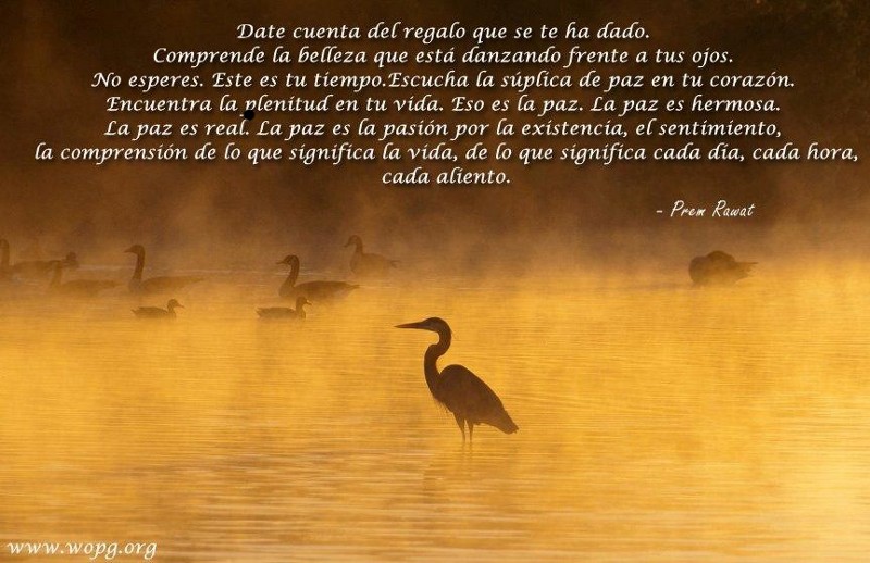 Encuentra la plenitud en tu vida. Eso es la paz. La paz es hermosa.