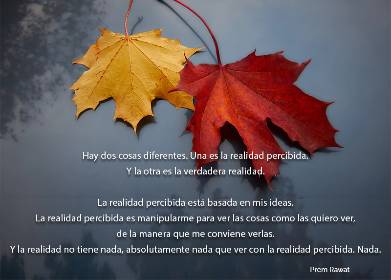 La realidad percibida está basada en mis ideas. La realidad percibida es manipularme para ver las cosas como las quiero ver, de la manera que me conviene verlas. Y la realidad no tiene nada, absolutamente nada que ver con la realidad percibida. Nada.