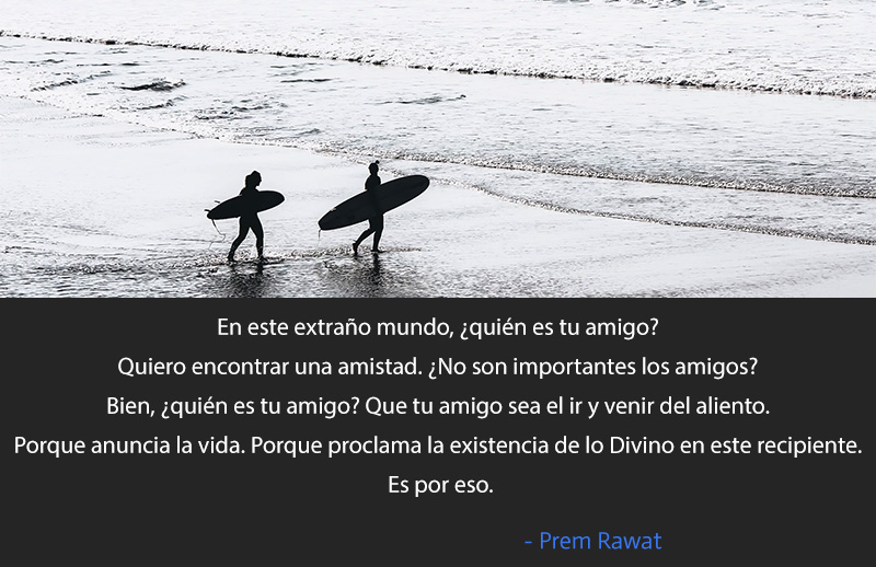 ¿En este extraño mundo quién es tu amigo? Tratas de encontrar una amistad. ¿Son importantes los amigos? Bien, ¿Quién es tu amigo? Cuando tu amigo sea el ir y venir del aliento. Por proclamar la vida. Por proclamar la existencia del Divino en este navío. Es por eso.