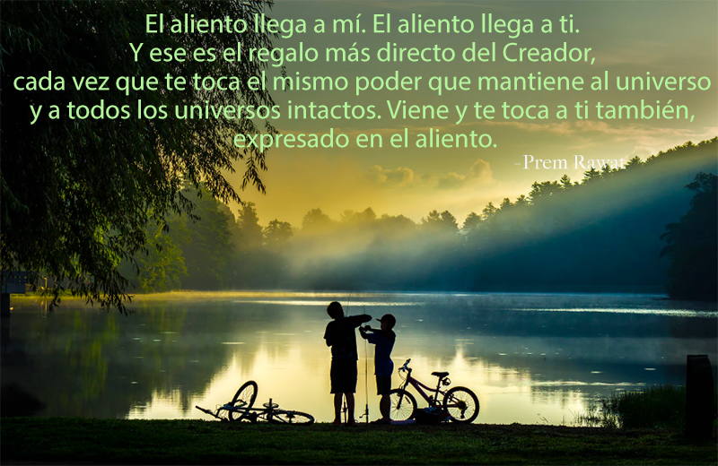 cada vez que te toca el mismo poder que mantiene al universo y a todos los universos intactos. Viene y te toca a ti también, expresado en el aliento.
