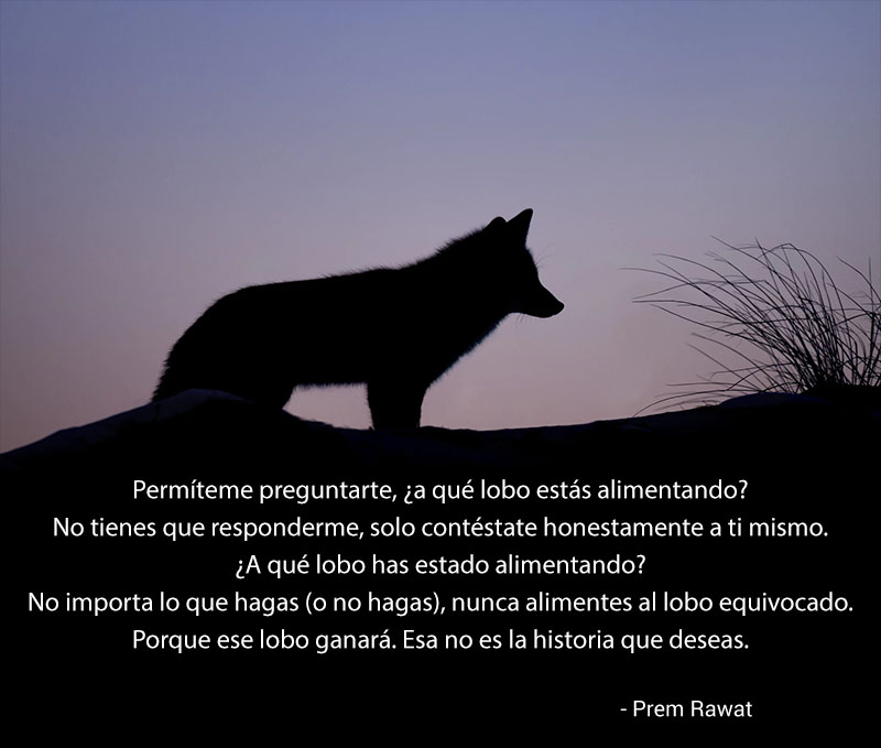 Permíteme preguntarte, ¿a qué lobo estás alimentando? No tienes que responderme, solo contéstate honestamente a ti mismo. ¿A qué lobo has estado alimentando? No importa lo que hagas (o no hagas), nunca alimentes al lobo equivocado. Porque ese lobo ganará. Esta no es la historia que deseas.