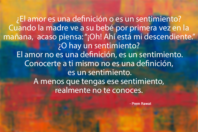 ¿El amor es una definición o es un sentimiento? Cuando la madre ve a su bebé por primera vez en la mañana, acaso piensa: “¡Oh! Ahí está mi descendiente.” ¿O hay un sentimiento? El amor no es una definición, es un sentimiento. Conocerte a ti mismo no es una definición, es un sentimiento. A menos que tengas ese sentimiento, realmente no te conoces.