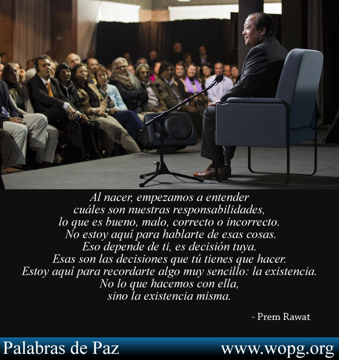 Al nacer, empezamos a entender cuáles son nuestras responsabilidades, lo que es bueno, malo, correcto o incorrecto. No estoy aquí para hablar de esas cosas. Eso depende de ti, es decisión tuya. Esas son las decisiones que tú tienes que hacer. Estoy aquí para recordarte algo muy sencillo: la existencia. No lo que hacemos con ella, sino la existencia misma.