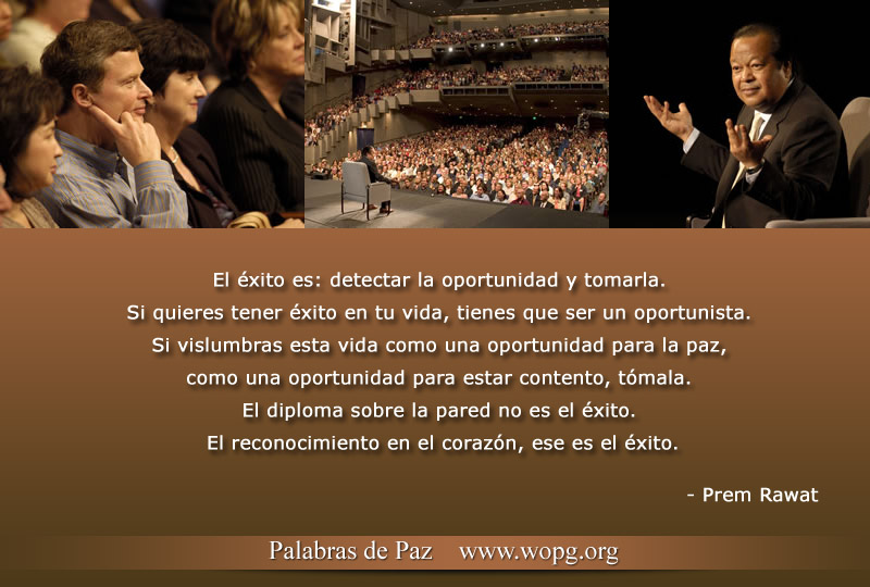 El éxito es: oportunidad observada, oportunidad aprovechada. Si quieres tener éxito en tu vida, tienes que ser un oportunista. Si vez a esta vida como una oportunidad para la paz, una oportunidad de estar contento, tómala. El reconocimiento sobre la pared no es el éxito. El reconocimiento está en el corazón, es el éxito.