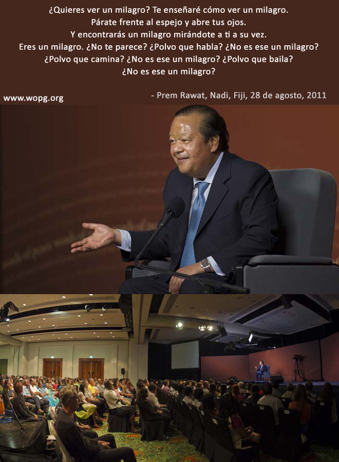 ¿Quieres ver un milagro? Te enseñaré cómo ver un milagro. Párate frente al espejo y abre tus ojos. Y encontrarás un milagro mirándote a ti a su vez. Eres un milagro. ¿No te parece? ¿Polvo que habla? ¿No es ese un milagro? ¿Polvo que camina? ¿No es ese un milagro? ¿Polvo que baila? ¿No es ese un milagro? Abre tus ojos y verás un milagro en todas partes.
