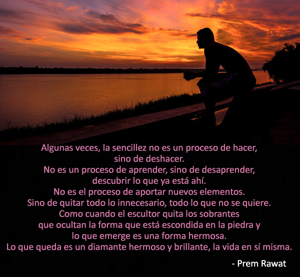 Algunas veces, la sencillez no es un proceso de hacer, sino de deshacer. No es un proceso de aprender, sino de desaprender, descubrir lo que ya está ahí. No es el proceso de aportar nuevos elementos. Sino de quitar todo lo innecesario, todo lo que no se quiere. Como cuando el escultor quita los sobrantes que ocultan la forma que está escondida en la piedra y lo que emerge es una forma hermosa. Lo que queda es un diamante hermoso y brillante, la vida en sí misma.