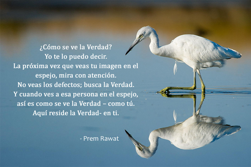 ¿Cómo se ve la Verdad? Yo te lo puedo decir. La próxima vez que veas tu imagen en el espejo, mira con atención. No veas los defectos; busca la Verdad. Y cuando ves a esa persona en el espejo, así es como se ve la Verdad – como tú. Aquí reside la Verdad- en ti.