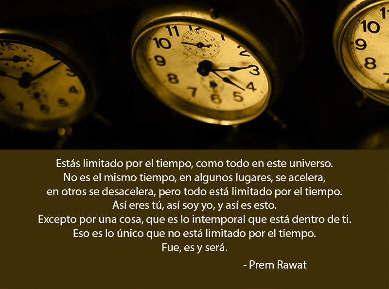 Estás limitado por el tiempo, como todo en este universo. No es el mismo tiempo, en algunos lugares, se acelera, en otros se desacelera , pero todo está limitado por el tiempo. Así eres tú, así soy yo, y así es esto. Excepto por una cosa, que es lo intemporal que está dentro de ti. Eso es lo único que no está limitado por el tiempo. Fue, es y será.
