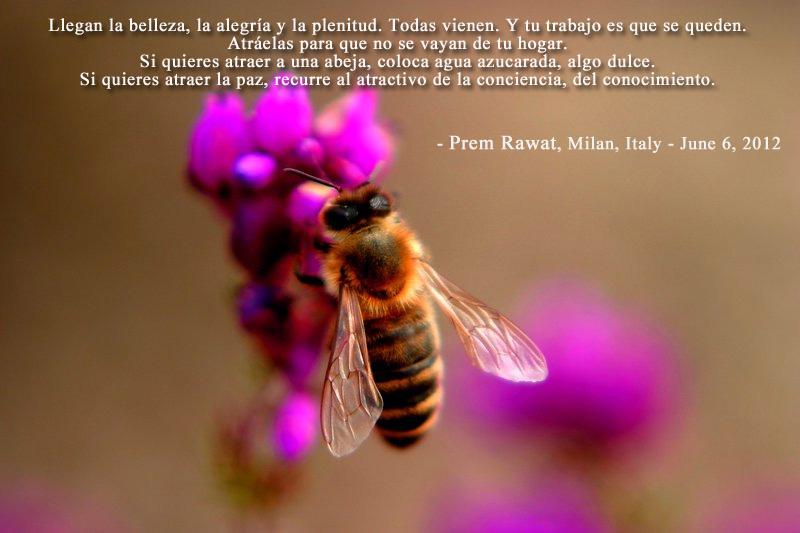 Llegan la belleza, la alegría y la plenitud. Todas vienen. Y tu trabajo es que se queden. Atráelas para que no se vayan de tu hogar. Si quieres atraer a una abeja, coloca agua azucarada, algo dulce. Si quieres atraer la paz, recurre al atractivo de la conciencia, del conocimiento.