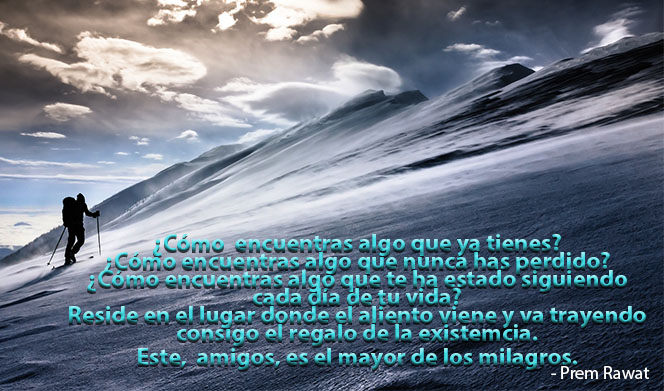 ¿Cómo encuentras algo que ya tienes? ¿Cómo encuentras algo que nunca has perdido? ¿Cómo encuentras algo que te ha estado siguiendo cada día de tu vida? Reside en el lugar donde el aliento viene y va trayendo consigo el regalo de la existencia. Esto, mis amigos, es el mayor de los milagros.