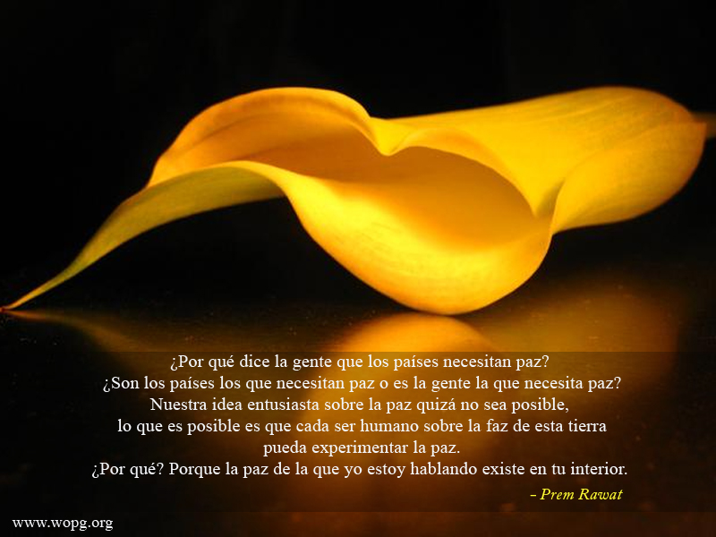 ¿Por qué dice la gente que los países necesitan paz? ¿Son los países los que necesitan paz o es la gente que necesita paz? Nuestra idea entusiasta sobre la paz quizá no sea posible, lo que es posible es que cada ser humano sobre la faz de esta tierra pueda experimentar la paz. ¿Por qué? Porque la paz de la que yo estoy hablando existe en tu interior. Esa es la única razón por la que es posible. No es cuestión de distribución. La sed de paz existe en el interior, y la paz existe en el interior.