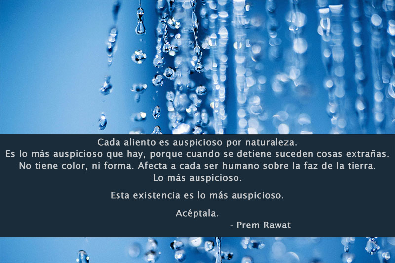 Cada aliento es auspicioso por naturaleza. Es lo más auspicioso que hay, porque cuando se detiene suceden cosas extrañas. No tiene color, ni forma. Afecta a cada ser humano sobre la faz de la tierra. Lo más auspicioso. Esta existencia es lo más auspicioso. Acéptala.