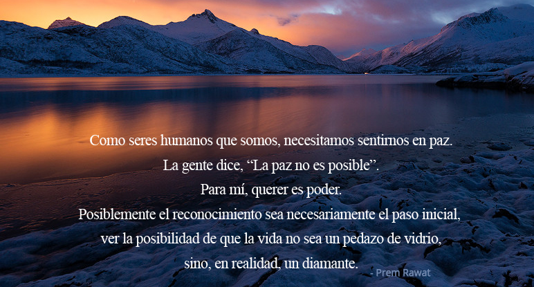 Como seres humanos que somos, necesitamos sentirnos en paz. La gente dice, “La paz no es posible”. Para mí, querer es poder. Posiblemente el reconocimiento sea necesariamente el paso inicial, ver la posibilidad de que la vida no sea un pedazo de vidrio, sino, en realidad, un diamante.