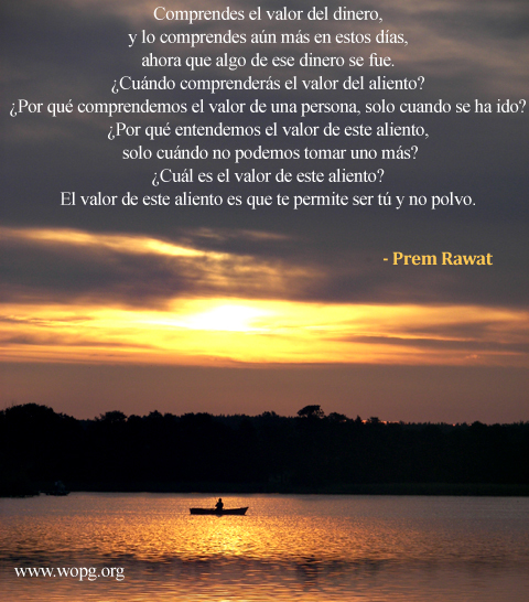 Comprendes el valor del dinero, y lo comprendes aún más en estos días, ahora que algo de ese dinero se fue. ¿Cuándo comprenderás el valor del aliento? ¿Por qué comprendemos el valor de una persona solo cuando se ha ido? ¿Por qué entendemos el valor de este aliento solo cuándo no podemos tomar uno más? ¿Cuál es el valor de este aliento? El valor de este aliento es lo que te permite ser tú y no polvo.
