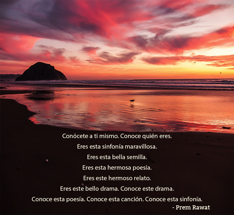 Conócete a ti mismo. Conoce quién eres. Eres esta sinfonía maravillosa. Eres esta bella semilla. Eres esta hermosa poesía. Eres este hermoso relato. Eres este bello drama. Conoce este drama. Conoce esta poesía. Conoce esta canción. Conoce esta sinfonía.