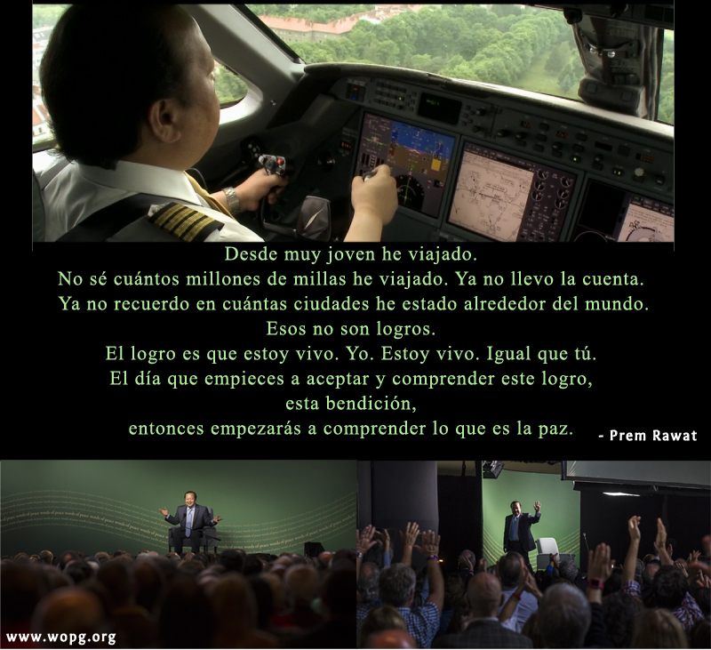Desde muy joven he viajado. No sé cuántos millones de millas he viajado. Ya no llevo la cuenta. Ya no recuerdo en cuántas ciudades he estado alrededor del mundo. Esos no son logros. El logro es que estoy vivo. Yo. Estoy vivo. Igual que tú. El día que empieces a aceptar y comprender este logro, esta bendición, entonces empezarás a comprender lo que es la paz.
