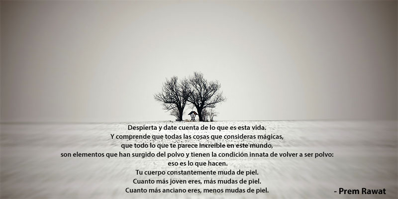 Despierta y date cuenta de lo que es esta vida. Y comprende que todas las cosas que consideras mágicas, que todo lo que te parece increíble en este mundo, son elementos que han surgido del polvo y tienen la condición innata de volver a ser polvo: eso es lo que hacen. Tu cuerpo constantemente muda de piel. Cuanto más joven eres, más mudas de piel. Cuanto más anciano eres, menos mudas de piel.