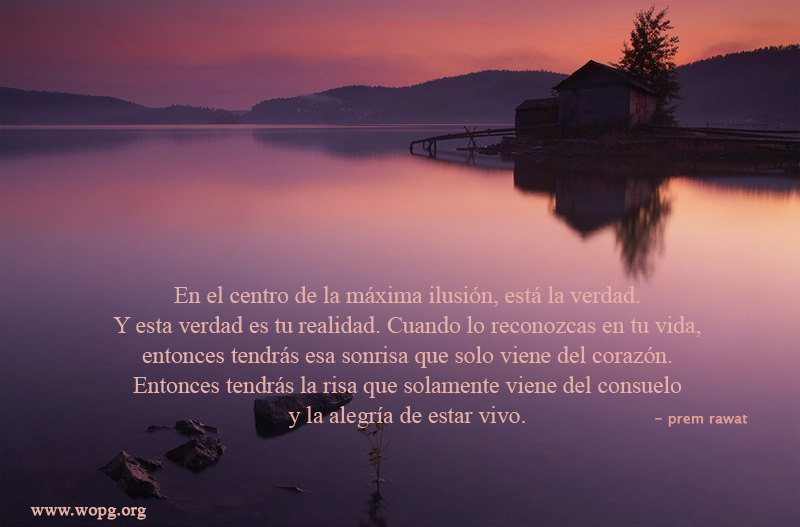 En el centro de la máxima ilusión, está la verdad. Y esta verdad es tu realidad. Cuando lo reconozcas en tu vida, entonces tendrás esa sonrisa que solo viene del corazón. Entonces tendrás la risa que solamente viene del consuelo y la alegría de estar vivo.