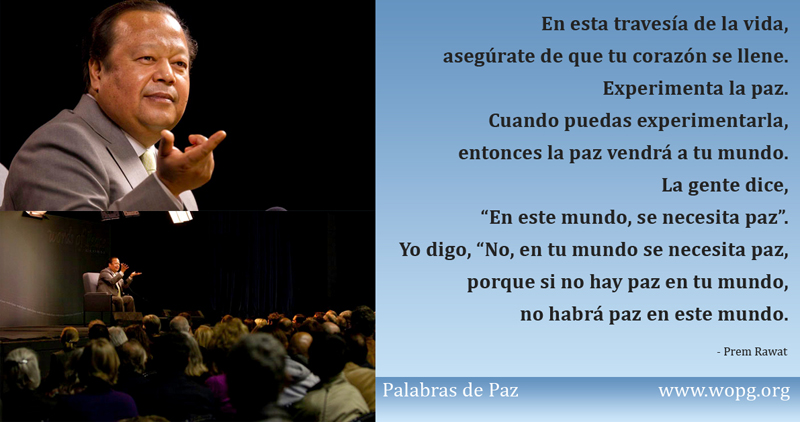 En esta travesía de la vida, asegúrate de que tu corazón se llene. Experimenta la paz. Cuando puedas experimentarla, entonces la paz vendrá a tu mundo. La gente dice, “En este mundo, se necesita paz”. Yo digo, “No, en tu mundo se necesita paz, porque si no hay paz en tu mundo, no habrá paz en este mundo.