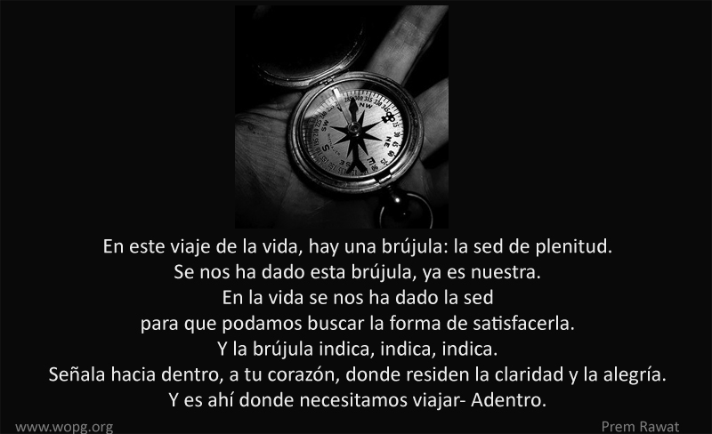 Y la brújula indica, indica, indica. Señala hacia dentro, a tu corazón, donde residen la claridad y la alegría. Y es ahí donde necesitamos viajar- Adentro.