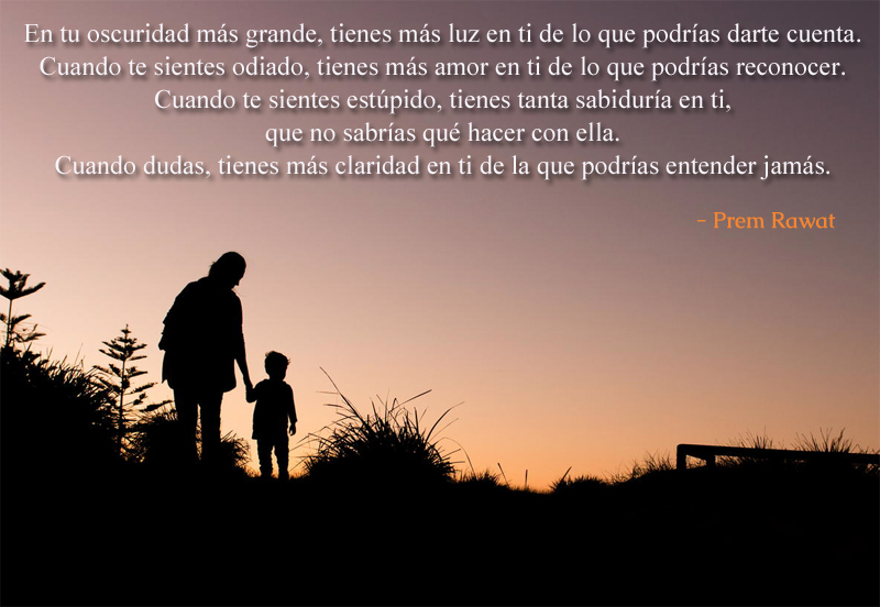 En tu oscuridad más grande, tienes más luz en ti de lo que podrías darte cuenta. Cuando te sientes odiado, tienes más amor en ti de lo que podrías reconocer. Cuando te sientes estúpido, tienes tanta sabiduría en ti, que no sabrías qué hacer con ella. Cuando dudas, tienes más claridad en ti de la que podrías entender jamás.