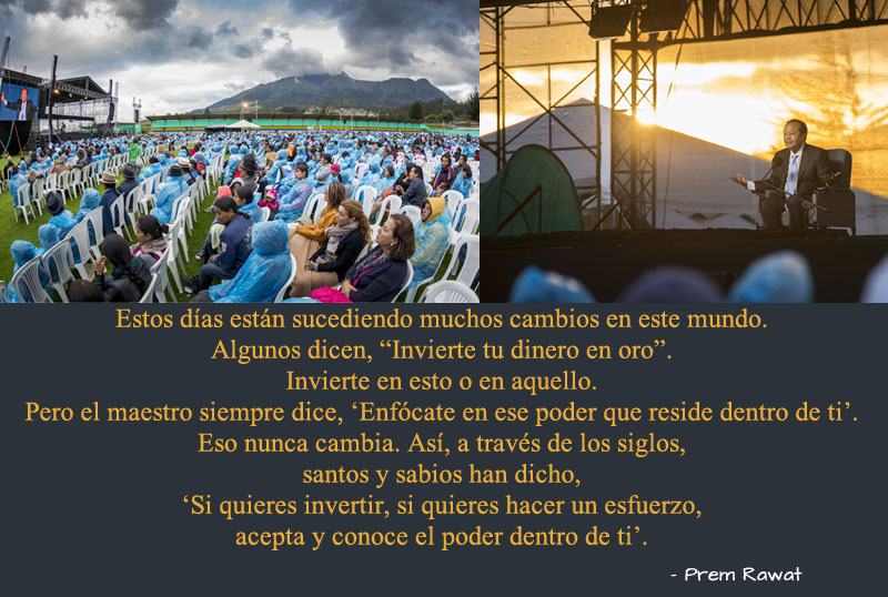 Estos días están sucediendo muchos cambios en este mundo. Algunos dicen, “Invierte tu dinero en oro”. Invierte en esto o en aquello. Pero el maestro siempre dice, ‘Enfócate en ese poder que reside dentro de ti’. Eso nunca cambia. Así, a través de los siglos, santos y sabios han dicho, ‘Si quieres invertir, si quieres hacer un esfuerzo, acepta y conoce el poder dentro de ti’.