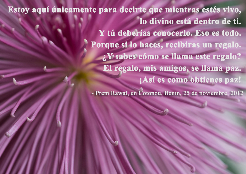 Estoy aquí únicamente para decirte que mientras estés vivo, lo divino está dentro de ti. Y tú deberías conocerlo. Eso es todo. Porque si lo haces, recibirás un regalo.