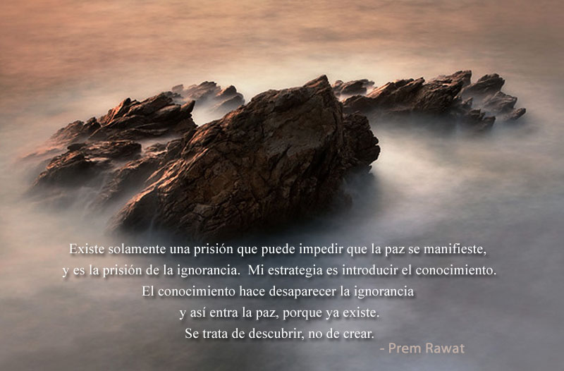 Existe solamente una prisión que puede impedir que la paz se manifieste, y es la prisión de la ignorancia. Mi estrategia es introducir el conocimiento. El conocimiento hace desaparecer la ignorancia y así entra la paz, porque ya existe. Se trata de descubrir, no de crear.
