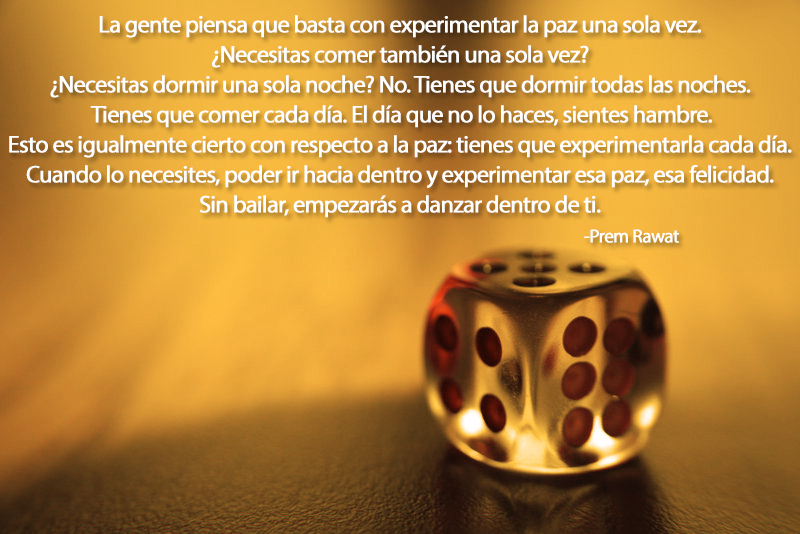 La gente piensa que basta con experimentar la paz una sola vez. ¿Necesitas comer también una sola vez? ¿Necesitas dormir una sola noche? No. Tienes que dormir todas las noches. Tienes que comer cada día. El día que no lo haces, sientes hambre. Esto es igualmente cierto con respecto a la paz: tienes que experimentarla cada día. Cuando lo necesites, poder ir hacia dentro y experimentar esa paz, esa felicidad. Sin bailar, empezarás a danzar dentro de ti.