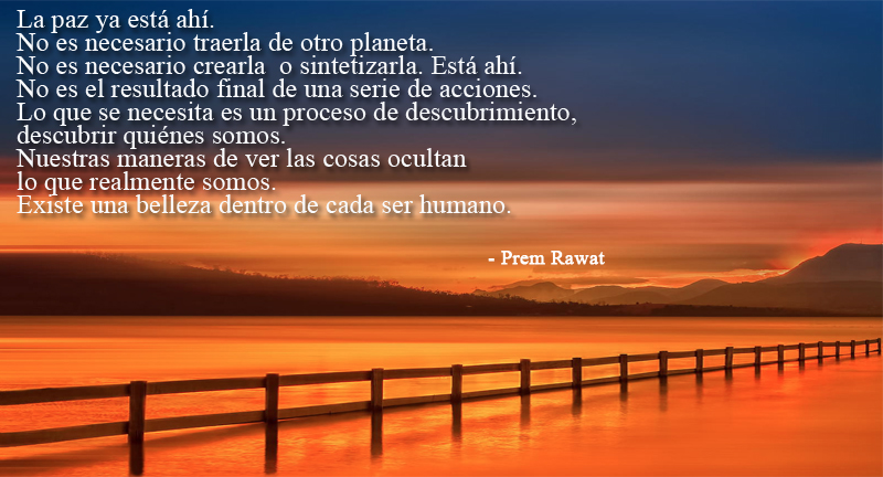 La paz ya está ahí. No es necesario traerla de otro planeta. No es necesario crearla o sintetizarla. Está ahí. No es el resultado final de una serie de acciones. Lo que se necesita es un proceso de descubrimiento, descubrir quiénes somos. Nuestras maneras de ver las cosas ocultan lo que realmente somos. Existe una belleza dentro de cada ser humano.