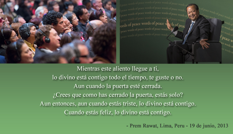 Mientras este aliento llegue a ti, lo divino está contigo todo el tiempo, te guste o no. Aun cuando la puerta esté cerrada. ¿Crees que como has cerrado la puerta, estás solo? Aun entonces, aun cuando estás triste, lo divino está contigo. Cuando estás feliz, lo divino está contigo.