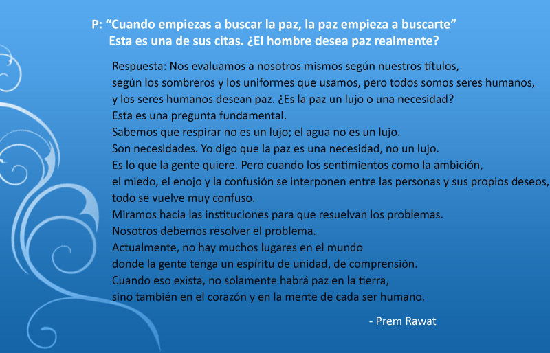 P: “Cuando empiezas a buscar la paz, la paz empieza a buscarte” Esta es una de tus citas. ¿El hombre desea paz realmente?