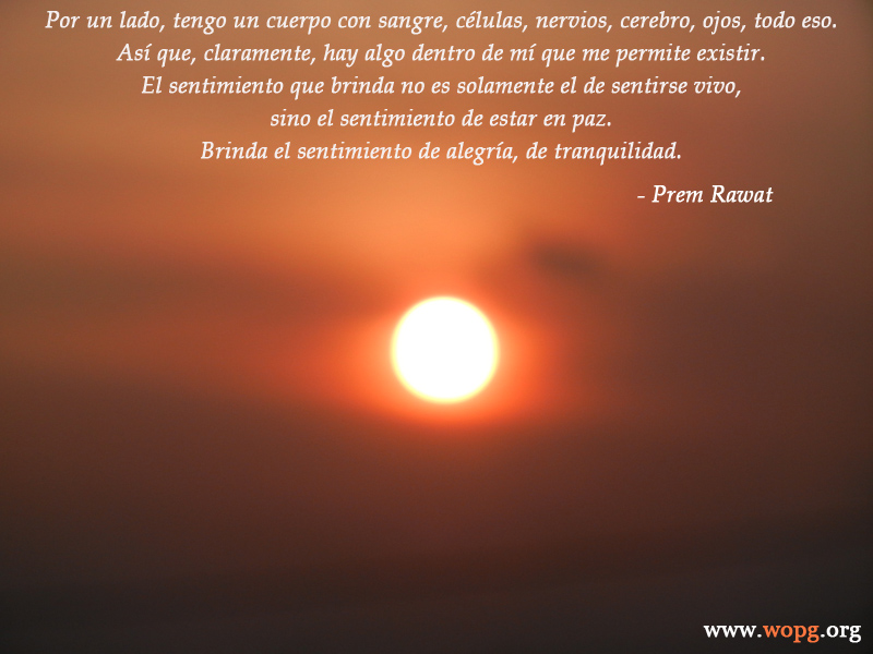 Por un lado, tengo un cuerpo con sangre, células, nervios, cerebro, ojos, todo eso. Así que, nítidamente, hay algo dentro de mí que me permite existir. El sentimiento que brinda no es solamente el de sentirse vivo, sino el sentido de estar en paz. Brinda el sentimiento de alegría, de tranquilidad.