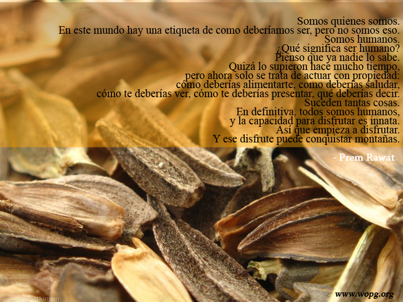 Somos quienes somos. En este mundo hay una etiqueta de como deberíamos ser, pero no somos eso. Somos humanos. ¿Qué significa ser humano? Pienso que ya nadie lo sabe. Quizá lo supieron hace mucho tiempo, pero ahora solo se trata de actuar con propiedad: cómo deberías alimentarte, como deberías saludar, cómo te deberías ver, cómo te deberías presentar, qué deberías decir. Suceden tantas cosas. En definitiva, todos somos humanos, y la capacidad para disfrutar es innata. Así que empieza a disfrutar. Y ese disfrute puede conquistar montañas.