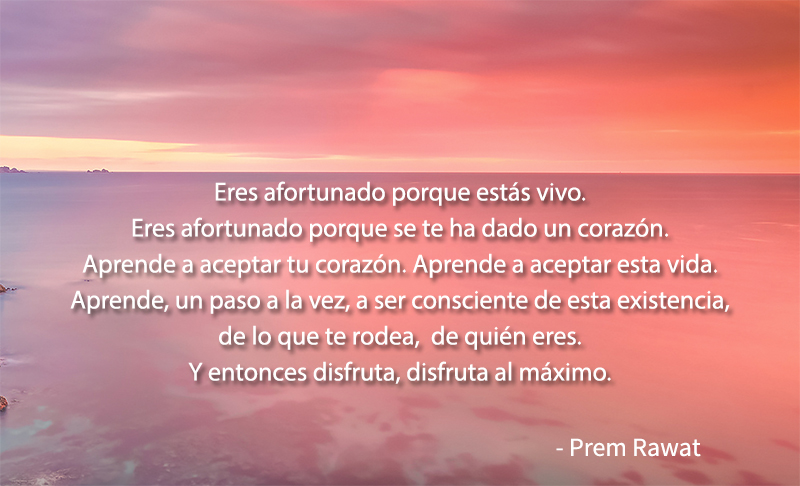 Tú eres afortunado porque estás vivo. Eres afortunado porque se te ha dado un corazón. Aprende a aceptar tu corazón. Aprende a aceptar esta vida. Aprende, un paso a la vez, a ser consciente de esta existencia, de lo que te rodea, de quién eres. Y entonces disfruta, disfruta al máximo.