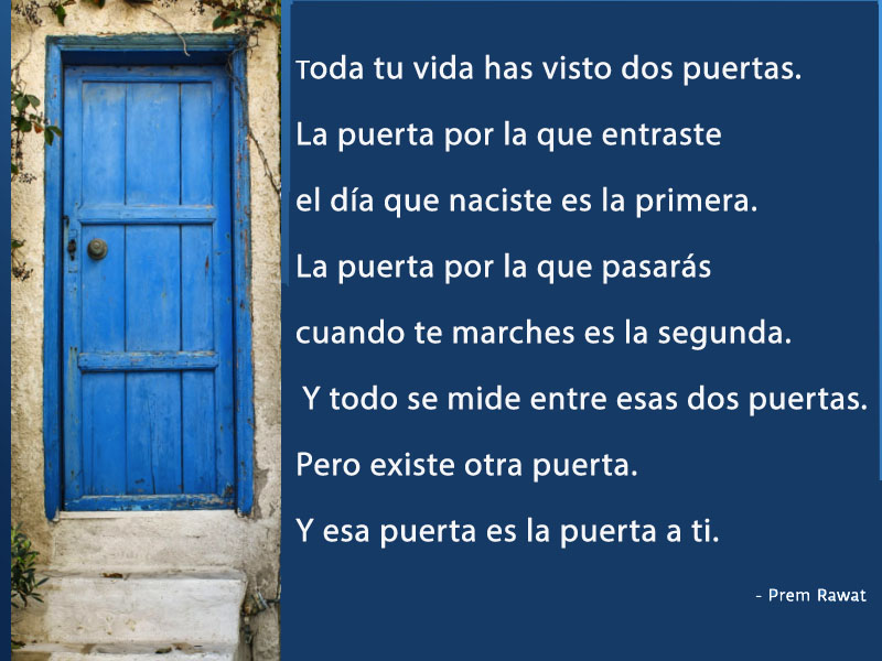 Toda tu vida has visto dos puertas. La puerta por la que entraste el día que naciste es la primera. La puerta por la que pasarás cuando te marches es la segunda. Y todo se mide entre esas dos puertas. Pero existe otra puerta. Y esa puerta es la puerta a ti.