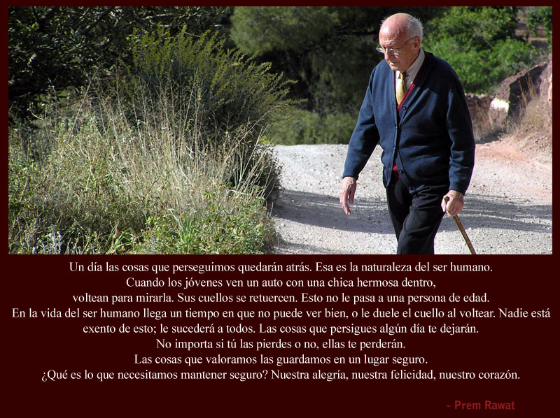 Un día las cosas que perseguimos quedarán atrás. Esa es la naturaleza del ser humano. Cuando los jóvenes ven un auto con una chica hermosa dentro, voltearán para mirarla. Sus cuellos se retuercen. Esto no le pasa a una persona de edad. En la vida del ser humano llega el tiempo en que no puede ver bien, o le duele el cuello al voltear. Nadie está exento de esto; les sucederá a todos. Las cosas que persigues algún día te dejarán. No importa si tú las pierdes o no, ellas te perderán. Las cosas que valoramos las guardamos en un lugar seguro. ¿Qué es lo que necesitamos mantener seguro? Nuestra alegría, nuestra felicidad, nuestro corazón.