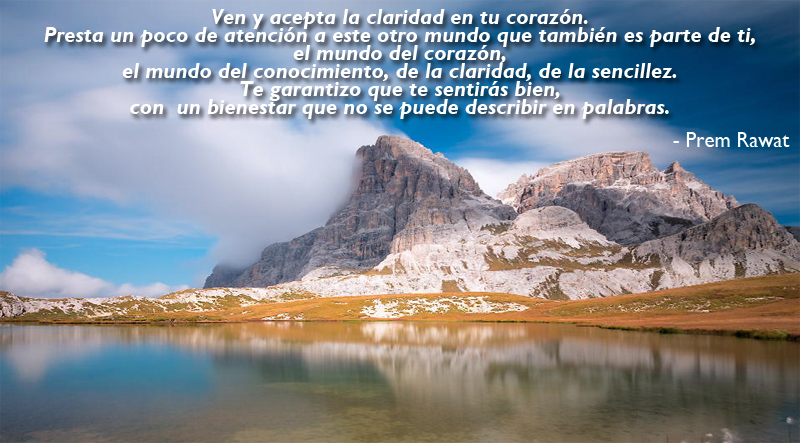 Ven y acepta la claridad en tu corazón. Presta un poco de atención a este otro mundo que también es parte de ti, el mundo del corazón, el mundo del conocimiento, de la claridad, de la sencillez. Te garantizo que te sentirás bien, con un bienestar que no se puede describir en palabras.
